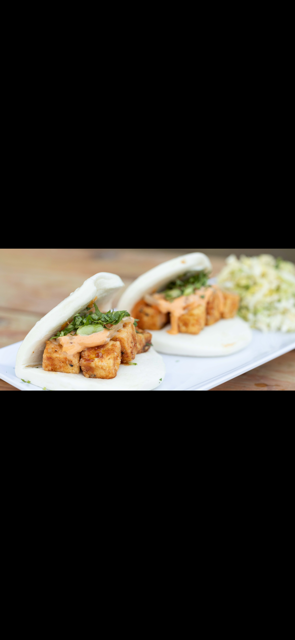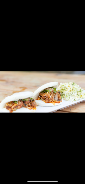 All buns are served with a side of Napa cabbage slaw tossed in house made Sake-Ginger dressing
