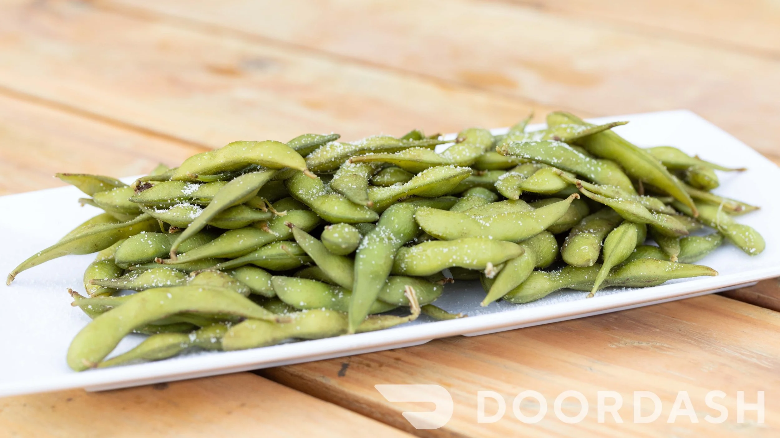Edamame: 1lbs. Edamame pods steamed and dusted with Himalayan pink salt
